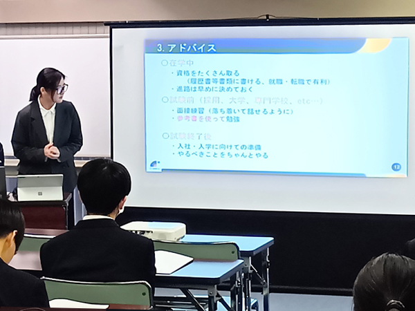 多数の生徒様にご参加いただき、会社の紹介、先輩が語るなどを実施しました。